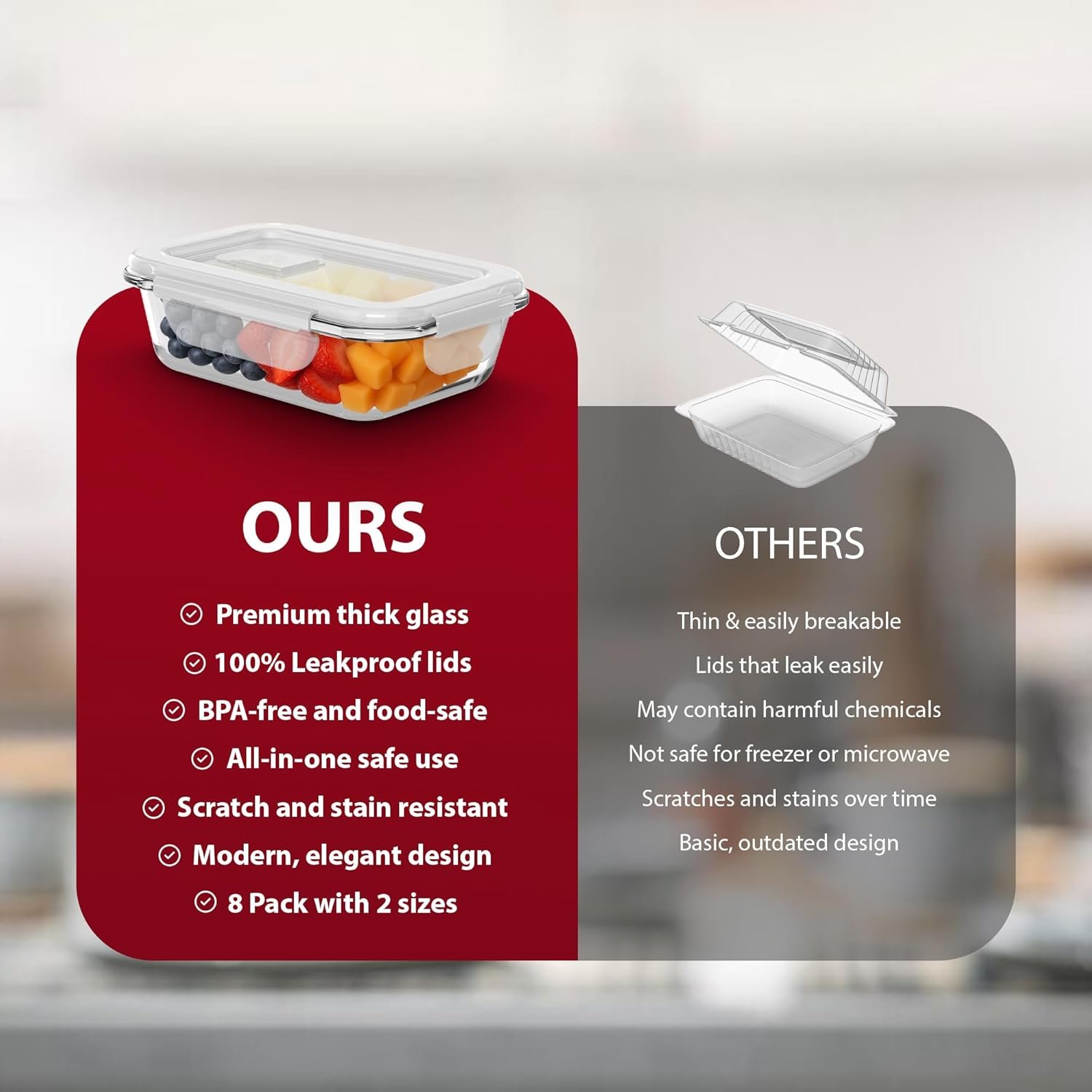 Denne ZENO glasbeholder s?t med lokke (8 stk) er simpelthen perfekt! Forskellige st?rrelser passer til alt ¨C fra sauce til leftovers, ingen mere kaos i k?leskabet.